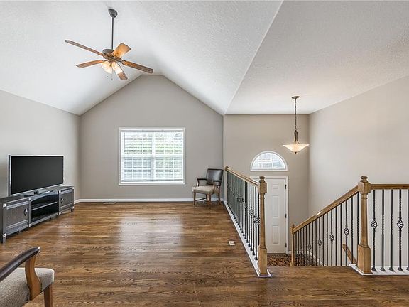 Fabulous split level in the sought-after Kearney school district.  Don’t miss this well-maintained property - it’s ready to go! Find beautiful hardwood floors and neutral colors throughout the main level.  Eat-in kitchen offers granite counters and fresh white cabinets, and wood blinds.  Living room boasts corner gas fireplace, newer carpet, vaulted ceilings and wood blinds. Down the hall find 3 bedrooms.  Updated master bath with dual vanities, walk-in shower, freshly tiled shower and tile floor.  Head downstairs to find a finished walk-out basement with second living area and half bath!  Outdoors find a deck with updating railing, stairs, large patio and fence.  Great location and close to shopping and schools.