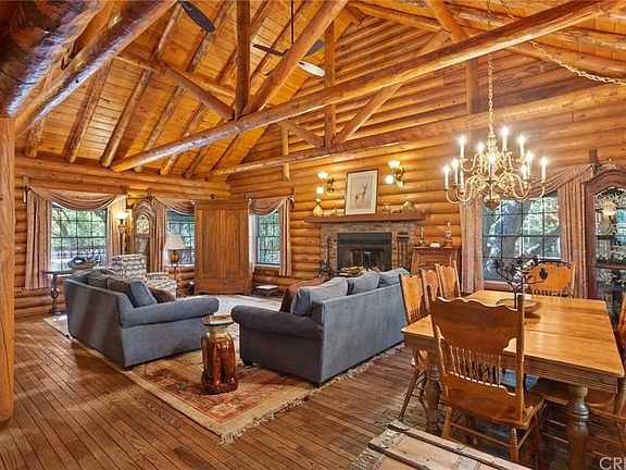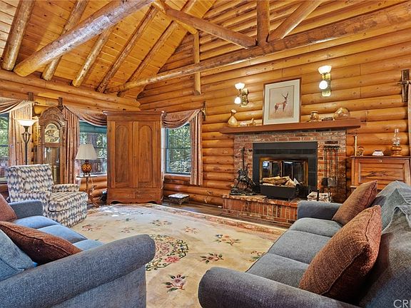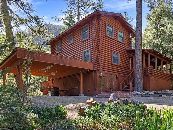 Rustic, cozy and charming 3 bdrm- 2 bath log home in the upper reaches of scenic and tranquil Pine Mountain Club. This 3-bedroom, 2-bath home is being packaged with the adjoining lot to provide a nearly half-acre spread. Living room features gorgeous hardwood floor, brick fireplace and impressive log beams across ceiling. One bedroom and a full bathroom are downstairs. Kitchen includes granite counter. Wonderful rustic touches include bench swing on covered front porch, antique-style stove in kitchen. Two backyard decks, enclosed by mature oaks and pines and accented by a circulating pond, are absolutely wonderful for relaxing and entertaining. Dedicated laundry room on first level. Excellent storage below living area, with a access in carport.