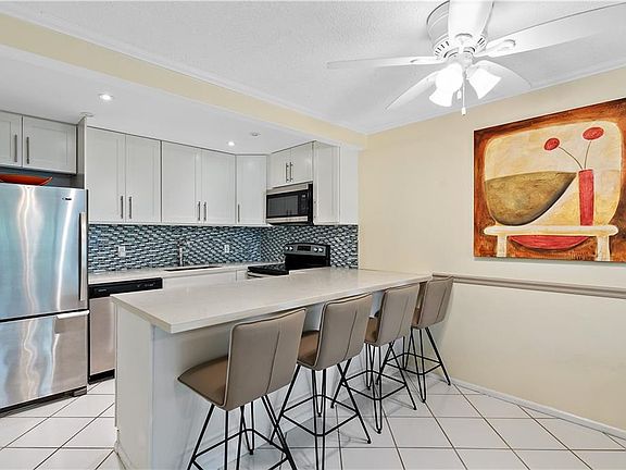 Welcome Home...to this gorgeously updated, move in ready convertible 2 bedroom/2 bath waterfront condo in this all age community with lower HOA fees of Hampton East Condo. Features galore include remodeled kitchen w/ Quartz counter tops and SS appliances, two beautifully remodeled bathrooms, high impact windows throughout, Plantation shutters, new electrical panel, recessed lighting, and crown molding. Originally 2 bedrooms currently converted to one bedroom. Secondary bedroom area is currently being used as a dining room. This private 10 unit Coral Ridge complex boasts breathtaking waterway views, a heated pool, lush tropical landscaped yard, and a daytime use community dock. Location is within one mile of highly rated shopping, dining, and entertainment. Hurry...this one won't last! Welcome Home...to this gorgeously updated, move in ready convertible 2 bedroom/2 bath waterfront condo in this all age community with lower HOA fees of Hampton East Condo. Features galore include remodeled kitchen w/ Quartz counter tops and SS appliances, two beautifully remodeled bathrooms, high impact windows throughout, Plantation shutters, new electrical panel, recessed lighting, and crown molding. Originally 2 bedrooms currently converted to one bedroom. Secondary bedroom area is currently being used as a dining room. This private 10 unit Coral Ridge complex boasts breathtaking waterway views, a heated pool, lush tropical landscaped yard, and a daytime use community dock. Location is within one mile of highly rated shopping, dining, and entertainment. Hurry...this one won't last!