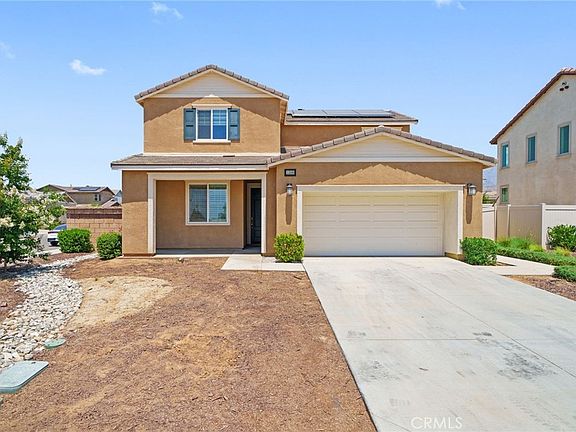 Wonderful home located in the Sundance North Community by Tri Pointe. The pride in ownership is evident throughout this beautiful property. Situated on a corner lot offering nearly 1,900 square feet of living space including 4 bedrooms and 3 bathrooms. Upon entry you're greeted by upgraded vinyl plank flooring and plantation shutters installed throughout the main living areas providing a uniform flow and easy maintenance. This open and inviting floor plan makes entertaining a breeze including the kitchen flanked with quartz countertops, stainless steel appliances, large center island, and plenty of cabinet space for all of your organizational needs. One bedroom and full bathroom located on the first floor, ideal for overnight guests. Moving along upstairs you'll find the master suite with dual sinks and an oversized walk-in closet. Two additional bedrooms, secondary bathroom and laundry room are also located on the second floor. Upgraded padding installed under all carpet. Enjoy your morning coffee and California sunshine in the backyard under the cover patio. Community amenities include 3 pools, spa, greenbelt, 3 tot lots and a basketball court. Close to schools, shopping, with easy access to the 10 and 60 FWYS. 15 mins to Cabazon Premium Outlets, Morongo Casino, and 30 mins. to Palm Springs! Don't let this opportunity pass you by, schedule your showing today!