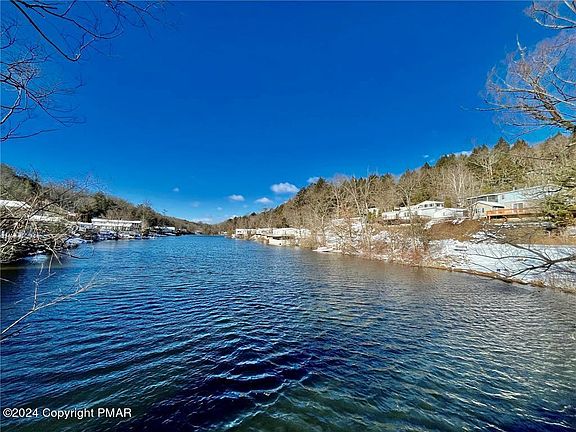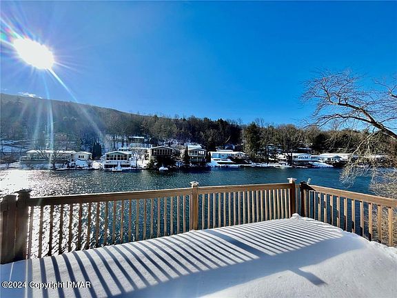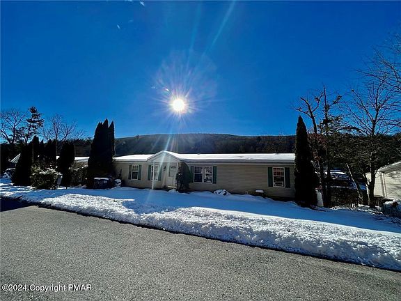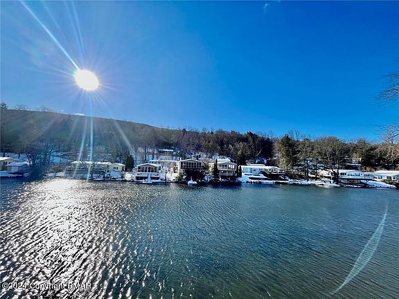 This 3 bedroom 2 full bath mobile home is directly on the lake, located in the tranquil Blue Mountain Village, a 55+ Community in Saylorsburg that boasts mature trees, a serene lake & clubhouse. The home offers vaulted ceilings, new vinyl plank flooring, large living room, dining room, galley kitchen, separate breakfast area that overlooks a large deck, Master bedroom suite with soaking tub, separate shower, den/office, new carpet in the bedrooms, first floor laundry, full basement for plenty of storage or could be additional living space, off street parking for two cars. Washer & dryer will remain. The CURRENT MONTHLY LOT RENT OF $651 Includes, water, sewer, trash, recycling and use of the clubhouse. Ready for immediate occupancy!!!!!!!
