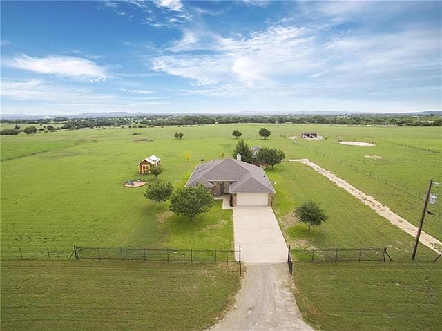 Gorgeous 5 acre horse property,600 sqft detached brick garage/workshop w/ large covered front patio-perfect for entertaining or relaxing , 28x12 2 stall barn, horse corral, crossed fenced, 28x10 storage shed w/ elect, wrought iron fence entrance to home,granite counters, kitchen island, stainless appliances, large dining area,hard wood floors throughout,family room features reverse trey ceiling, wood burning fireplace w/brick surround, built in wall safe in closet,sprinkler system,microwave being replaced