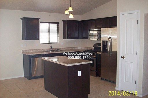 4 Bed Room in Northern MeadowsGreat 4BR/2Bath in Northern Meadows. Living area open to eat-in kitchen w/island. Kitchen stainless steel appliances include side-by-side refrigerator, gas stove, microwave, dishwasher, disposal and closet pantry. Master bedroom w/large walk-in closet, garden tub/shower combo, single vanity with great counter space. Washer hook-up and electric dryer hook-up. Faux wood window blinds, carpet/tile flooring, linen closet, alarm available at tenant expense, 2 car garage w/remotes. Refrigerated A/C. Backyard has a covered patio, fully fenced and rocked. Front yard southwest landscape. Walking paths and parks throughout neighborhood,DIRECTIONS: North on Unser, West on King, Right on Wilpett, Left on Camino de la Montoya, Right on Desert Pinon, Left on Desert Paintbrush