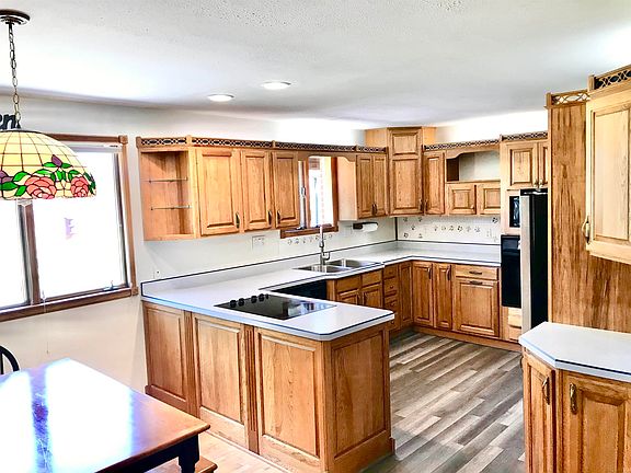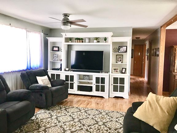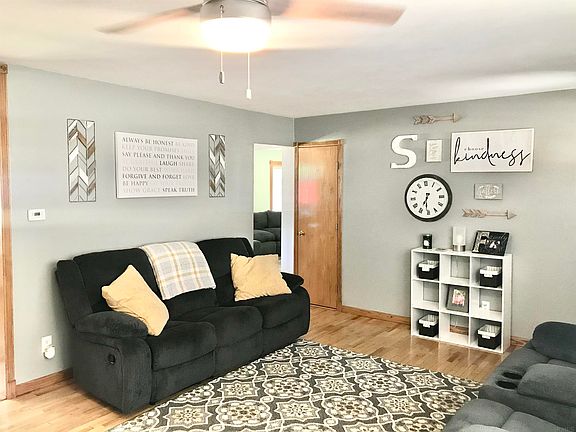 Here is that sweet home on a hill! Located on a quiet road just on the outskirts of town! This home has a great floor plan for hosting all the holidays! As soon as you walk up you will notice the great curb appeal and large yard that continues behind the home! The sweet front porch will greet your guests as they enter your large living room. The living room wraps around into the kitchen and dining space. This kitchen is built for all the cooks in your house! There are lots of cabinets and tons of countertop space! From here you can enter the great room at the back of the house! It has a brick fireplace for looks, beautiful windows, sliding doors to the backyard and would make a fantastic family room, office, or playroom! All three bedrooms are at the other end of the home! This home has a lot of great natural light! Some of the updates include a new metal roof in 2019, furnace and replaced ductwork in 2017, new gutters on the backside of the home and new facia, new water filter installed between the well bladder and hot water heater, a new sump pit and pump 2017, water heater 2017, and refrigerator 2021! Don’t forget the attached garage, detached garage and a shed that has concrete floors and electricity! Time to pack you bags! --