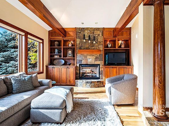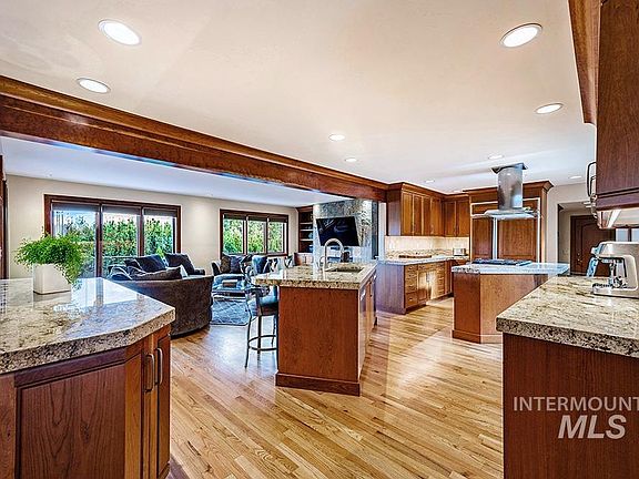 A divine residential oasis in the heart of the Highlands, surrounded by panoramic views and engulfed in exquisite custom finishes. Proudly displayed on a prime ~1/3-acre corner lot just moments to Bob's Trailhead, this magnificent residence blends the romance of Mediterranean architecture with the quality of Sun Valley craftsmanship. A lovely courtyard entrance illustrates an ambiance of relaxation and where togetherness is a focal point. Inside, this philosophy is evident throughout this graciously sized floor plan offering plenty of spaces for entertaining and solitude. The grand-scale kitchen is the entertainer's dream, equipped with two islands, gorgeous cherry wood cabinetry, granite countertops, a buffet bar, and a high-end package of Sub Zero®, Miele®, and Viking® appliances. The primary retreat is like a luxury hotel suite with elevated foothill views, complete with a fireplace, attached living room, enclosed office, walk-in closet, and spa-style bathroom with heated floors.