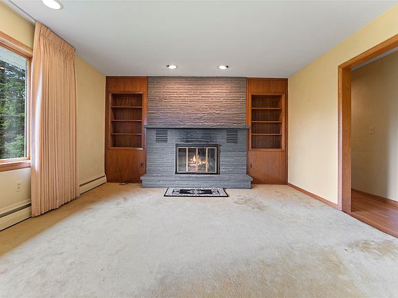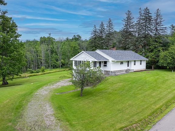 This single-owner, mid-century modern ranch home is nestled on 2.69 acres of serene flat land. Built in an area without light pollution, a clear night sky is your planetarium. Meticulously maintained, the attention to detail&beautiful craftsmanship is evident throughout the private property. Oak floors&trim flow from room to room.The open L/R,complete w/a floor to ceiling wood burning fireplace&x-large windows is the perfect space for celebrating. Built-in walnut book shelves add elegance.Adjacent to the L/R is a formal D/R offering views of picturesque surroundings.Contemporary galley eat-in kitchen boasts an abundance of birch cabinets&counter space.Within the versatile Florida room watch children play, leaves turn, snow fall. Large walkout basement features areas for shop,office,laundry&plenty of shelving.Floored attic, new roof, fresh paint on exterior&interior, a two car tandem garage completes this property. This home has many desirable&custom built-in features.
