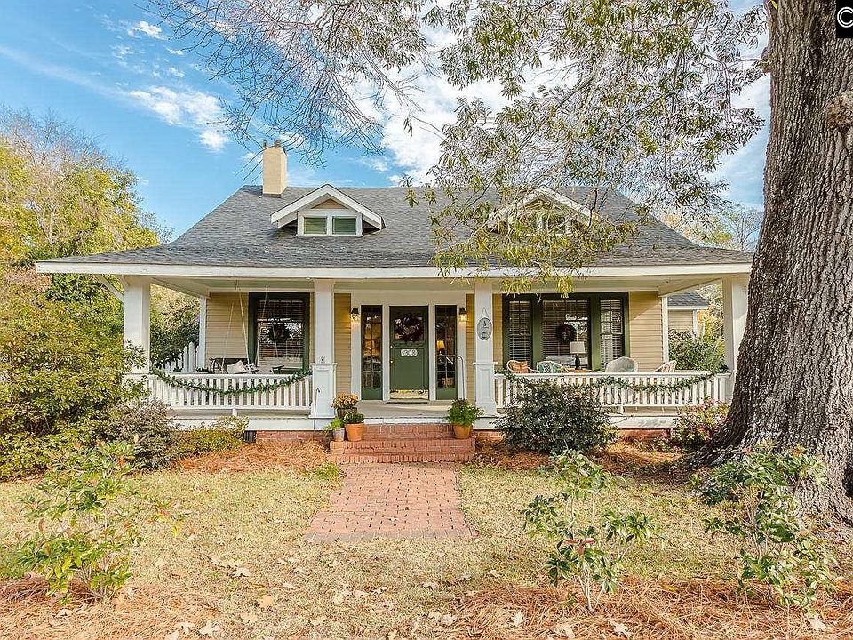 Craftsman style Cottage built in 1910 with clapboard exterior. This home features 10 foot ceilings and beautiful heart pine floors. Den features a large wood burning fireplace and is open to the kitchen. Kitchen is improved with granite countertops and stainless steel appliances. Large Downstairs bath has been updated with tile floors, separate sink vanities and bath tub/shower . Master Suite upstairs is centrally heated and cooled but has an additional wall unit . Private bath features a tile shower and tile floors. Office space outside master bedroom. Spacious front porch and rear patio with privacy fencing are great for outdoor entertaining.