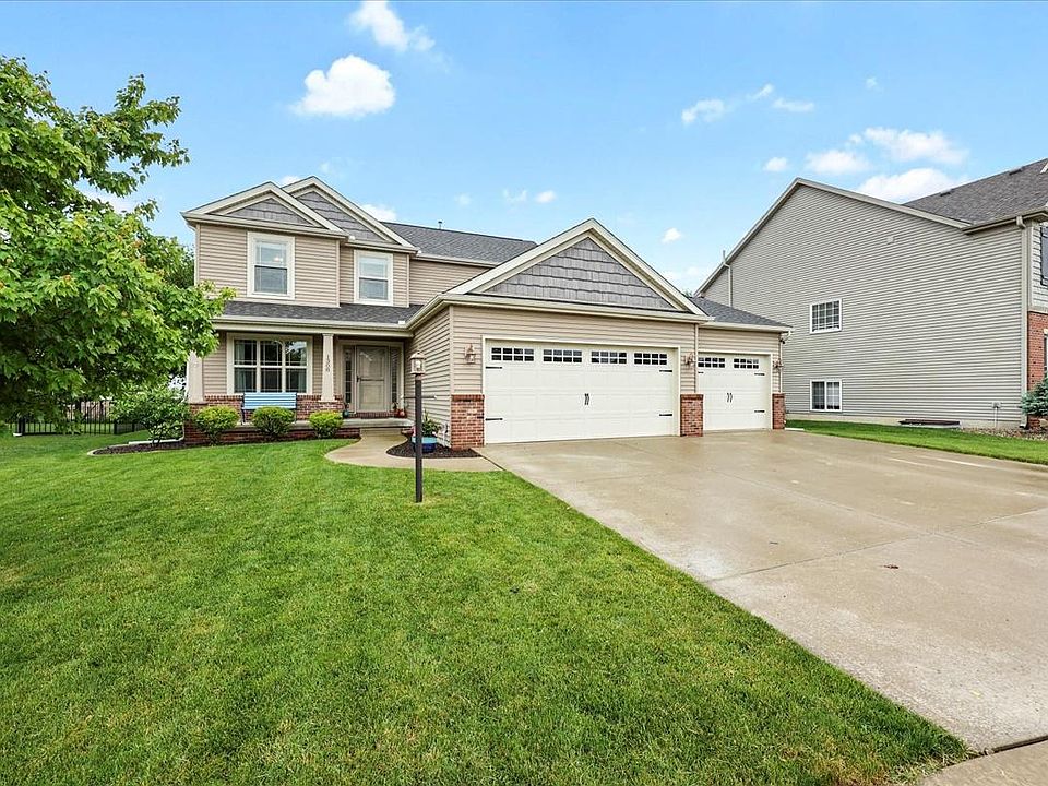Beautiful and better than new, quality-built Armstrong Construction in Fieldstone Subdivision. Spacious three car garage, front porch and pristine landscaping. As you enter there is a flex room off the main entry, hardwood floors, large living room with gas fireplace and dining area with wood floors. Custom kitchen is a dream with granite counter tops, tile backsplash, undercabinet lights and stainless appliances. Lots of wood and tile flooring throughout. Generous primary suite with cathedral ceiling, walk-in closet and bath with dual sinks, whirlpool tub and separate shower. You'll love the extra living space in the full basement featuring rec room, bedroom, full bath and storage area. The backyard is truly paradise with composite deck, wrought iron fence and mature trees.