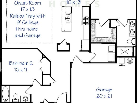 - Breakfast Bar, Kitchen Island, Double Vanity, Walk-In Closet(s), High Ceilings, Great Room, Laminate Counters, Smart Home, Entrance Foyer, Tray Ceiling(s), Wired for Data, Open Floorplan, Tub/Shower Combination, 1st Bdrm En Suite, Main Level Bedroom Suite, Stand Up Shower, Split Br Floor Plan