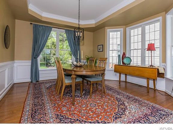 "Fabulous light-filled home with great transitional flow and space for everyone! 2-story foyer w/ open stairway welcomes you and leads you to the formal rooms. Large LR and DR boast hardwood floors, tray ceiling, columns, wainscotting and big bay-bow window. Updated kitchen features NEW beautiful granite counters, big island/bar, tin backsplash, HW floor, 42""cabinets, pantry and huge eat-in area with bay/palladium windows. It's the pefect entertaining space as big kitchen opens to inviting, light + bright family room w/cozy gas FP. Convenient Mudroom provides entry from the 2-car garage. Nice master BR with huge w/i closet and CF. Big Spa-like master bath with raised double vanity, glass-enclosed shower and deep soaking tub. 3 more good-sized BRs up, all with generous closet space. 2nd full bath features separate vanity area. AWESOME huge finished 3rd floor space with BAR and FULL BATH! Great for rec room, man-cave, or teen suite. Neutral decor and FRESH PAINT throughout. Relaxing full front porch. BIG 2-tiered deck overlooks beautifully landscaped, FENCED, flat backyard. Great neighborhood, close to highway, shopping and Chesterfield's best shools! This beautiful home has it ALL!"