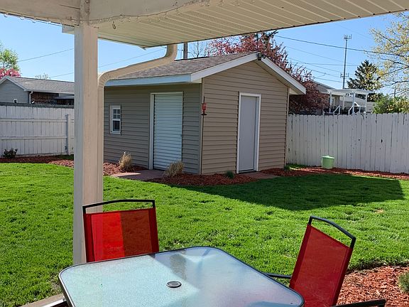 Beautiful Updated split foyer great neighborhood about a block from the park, outdoor basketball hoop fun for the whole family. Ready to move in 3 bedroom, 3 bath, Neutral colors, laminate flooring in kitchen and living room. Ceramic tile floors in master bath and foyer. Updated kitchen with stainless steel appliances. Laundry room on main level. Master bedroom has large Jacuzzi tub and walk in closet. Lower level finished with Large family room open area for game table or bar. It has 2 bedrooms and bath, area for storage. 2 car garage with second garage door that Opens to a large covered patio. Landscaped fenced yard with large storage shed. Home also has sand point.