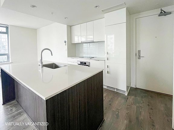 Trendy downtown living at SALT by Concert Properties! This bright SE-facing 2 bed + den corner unit offers stunning city skyline and water views. Thoughtfully designed layout with no wasted space, a sleek open-concept kitchen, spacious balcony, and one parking stall. Enjoy integrated European appliances, quartz counters, and modern finishes throughout. Building features a well-equipped gym, rooftop garden, party lounge & concierge. Walk to shops, seawall, dining, transit & more.