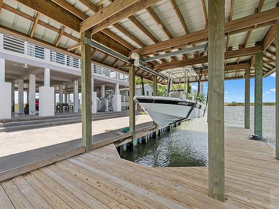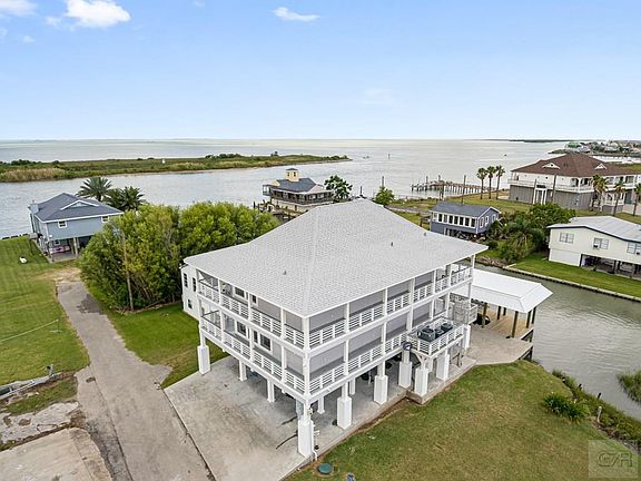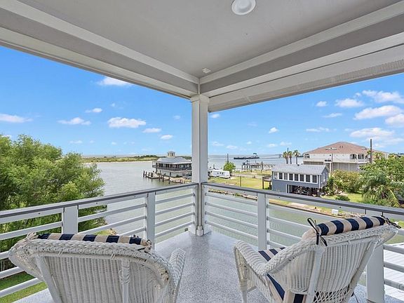 This amazing home sits at the opening into Galveston Bay. The waterfront views extend up and down the Intra-Coastal Waterway. Window walls of glass allow water views from every angle. The open floorplan features a centrally located kitchen with high end granite and gourmet appliances. The living room has builtins and wrap around water views. Upstairs you will find 2 primary bedrooms with baths and doors out to the second story wrap around deck. There is a wet bar on this level as well. The additional 2 bedrooms also have private doors to the deck and offer views of the bay. The double wrap a round decks assure you will always be able to find the perfect spot to enjoy the outdoors. Come downstairs to the boat slip and you are ready to head out. This home offers the perfect coastal escape. Enjoy the attached virtual tour!