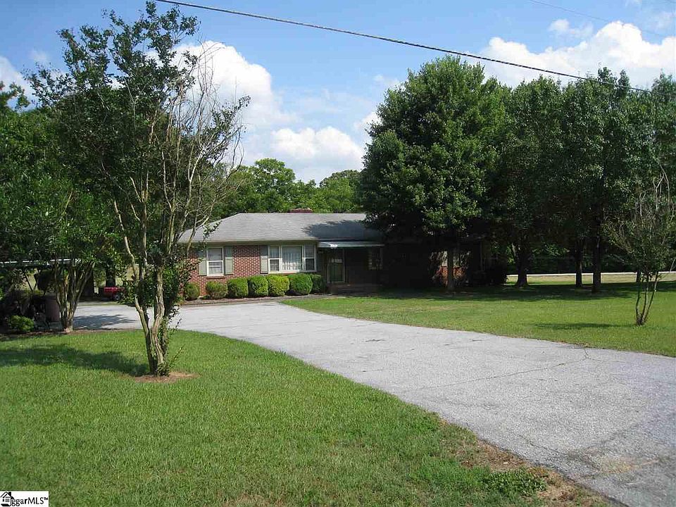 Charming all-brick ranch located in one of Simpsonville's most desirable areas. Nestled on 1 acre and surrounded by gorgeous estate homes, this home is a rare find! The home features 3 bedrooms, 2 bathrooms, a large dining area, and two spacious living rooms! A large level lot with mature trees enhances this homes picturesque setting. The property includes an expansive paved area with covered parking and a 24'x12' outbuilding. Excellent location convenient to both Five Forks and downtown Simpsonville, I385.