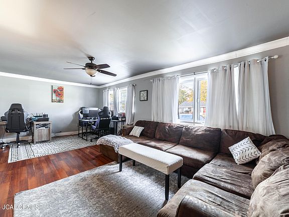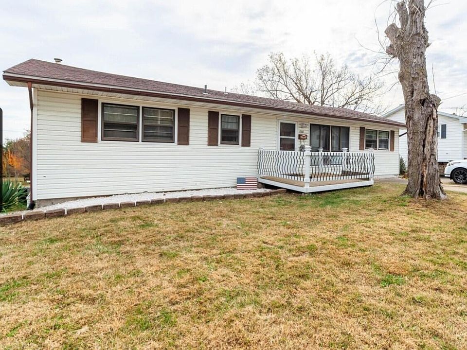 Thoughtfully remodeled and lovingly cared for, this property has 'welcome home' swaddled all around it. Adorable side porch, plus back deck, plus front porch and situated on an expansive lot with super-deep backyard with a backdrop of woods. Large living room upon entry, with wood flooring, is open to semi-formal dining area that wraps around to the hub of the home - the remodeled kitchen; full walk-out lower level includes a half bath and finished areas to easily allow additional bedroom if desired. The covered concrete patio extends living and playing spaces, adding a garage/shop underneath for outdoor implements or all season storage. 3rd bedroom on main floor has been converted to laundry room for ease and convenience. This sweetie won't last long. Set-up a showing today!