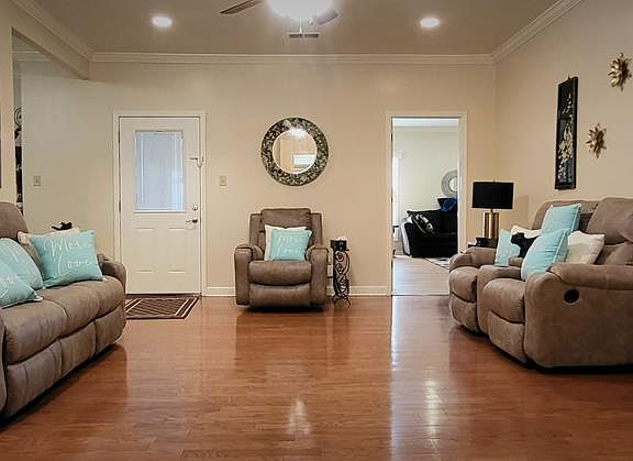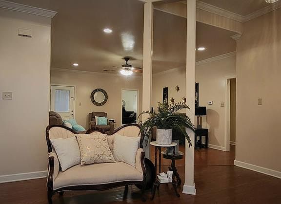 This Brick house In Chapel View Subdivision boasts nice space of 2559 sq ft and a uniquely-convenient floorplan. Hardwood floors extend through most of the living area. You'll find a split floorplan between master bed/bath and the additional bedrooms giving some sense of privacy from one end of the house to the other. Additional space has been newly constructed onto the back side of the house in recent years. That extra space provides a large den/great room, extension of breakfast nook, and master walk-in closet. Brand new roof and recently updated Central HVAC are some other perks that come along with this property. The rear exterior door leads through a screen enclosed porch into the back yard where you can make use of 2 storage buildings. There is also an actual staircase leading from the double garage into an attic well-fitted for extra storage space, and includes a large sub-floored area. Don't wait, call today to reserve your time to view this property.