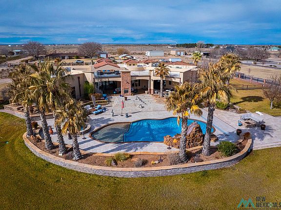 A premier custom built home located in Eddy County, just outside of the Artesia city limits. This 5 acre homestead sits next to the Country Club golf course and provides some of the best views in the city. 5 bedrooms and 4.5 baths encompass the 6,592 square feet of well thought out luxury. Extra consideration was a part of every aspect of this home. From a master shower that easily transforms into a steam shower room to velvet lined cabinets for jewelry and valuables. A climate controlled wine room and a separate man cave overlooking the one of a kind backyard oasis. This home will keep you guessing with what extra amenities you will discover.