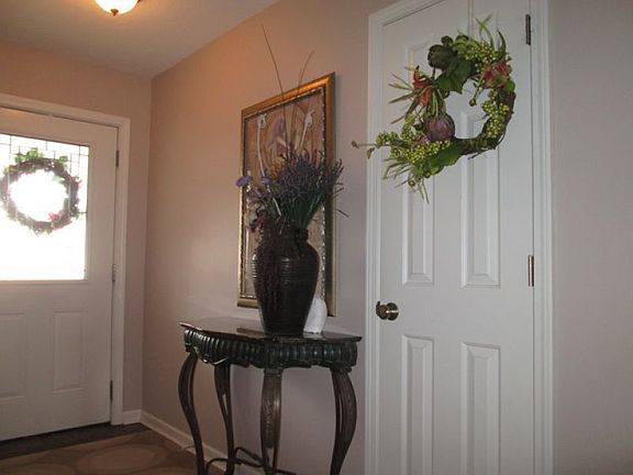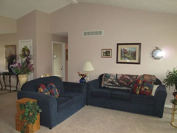 Outstanding three bedroom three bath ranch home on full finished basement. Amenities include: Great room with river rock gas fireplace, beautiful hickory kitchen cabinets, dining room, master suite with double vanities, security system, garden shed, wood deck, nice landscaping with small garden pond with aerator. Two baths on main and kitchen have ceramic tile and basement bath has six foot shower and slate flooring. Plumbed for water softener. Cathedral ceilings in great room and master bedroom.