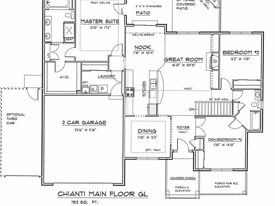 The Chianti Plan offers 3 bedrooms, 2 baths, 2 car garage on a walk-out lot. Hardwood floors, 5 piece master suite and front landscaping included. This one is under-contract but we can build you one too. Stop by 1127 White Water Court to plans and pricing.