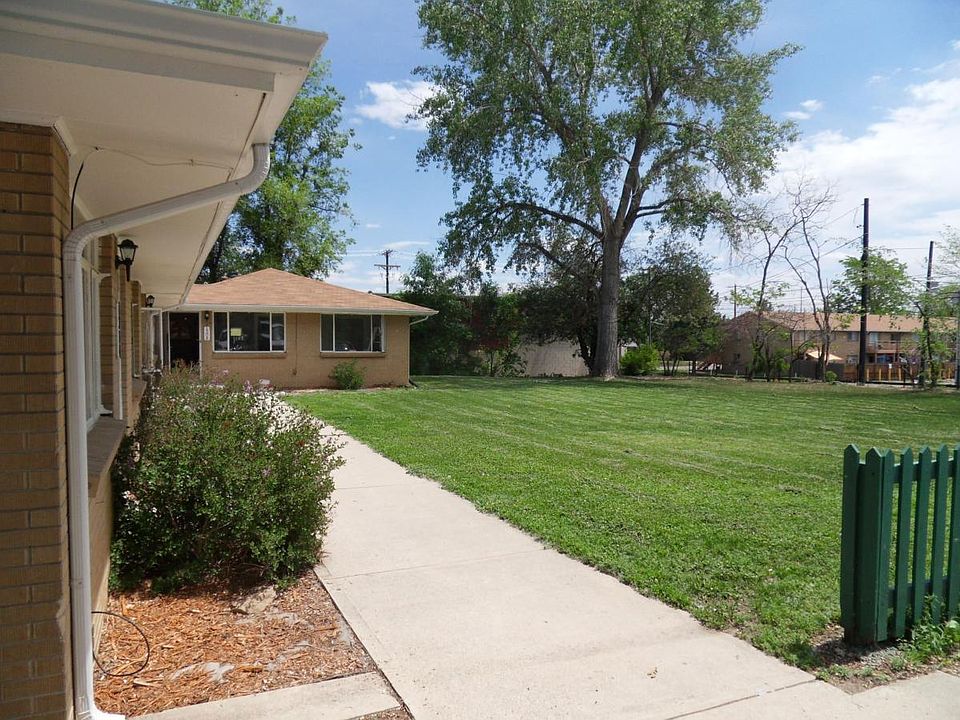 Unit 1312. Remodeled apartment in a 5-unit side by side building. Newer kitchen with hickory cabinets, granite counter tops, porcelain tile floor and all appliances including dishwasher. Remodeled bathroom with pedestal sink and porcelain tile. Refinished hardwood floors and newer paint throughout. Small deck area in back and huge yard in front (yard is not fenced). Shared laundry room with coin-operated washers and dryers. 2 off-street parking spaces provided. Great location on the new light-rail line and only 1/2 block from a station. Quiet and private community. 1 dog or cat allowed. Please call Mike at 303-seven two six-2133 1 year lease with option to renew.