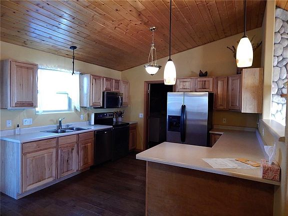 PRICE REDUCED AGAIN!! Ranch style cedar home sits on a large .54 acre lot with SNOWCAPPED MOUNTAIN VIEWS, only 25 minutes to Breck, and is on town water & sewer. Short term or long term rental potential. Hardwood floors, T&G vaulted ceiling, hickory cabinets, SS appliances, solid wood 6 panel doors throughout, floor to ceiling cobblestone gas fireplace, fenced backyard & an OS 2 car attached garage with opener. Master suite features a walk-in closet and full bath. Walking distance to rec center.
