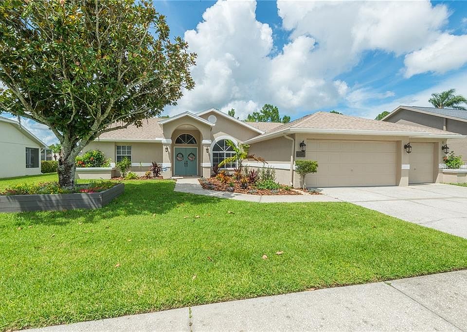 Wonderful home located on a very private lot with no rear neighbors! This very open and spacious home features 3 bedrooms, 2 bathrooms, 3 car garage, split floor plan, volume ceilings, huge great room with wood burning fireplace, formal dining room, foyer, generous sized kitchen with brand new stainless steel appliances, large master suite with walk in closet and private bathroom, additional bedrooms are generous in size. Walk out back to an over sized screened lanai over looking the tranquil pond and conservation area. Brand NEW Roof! Call today!