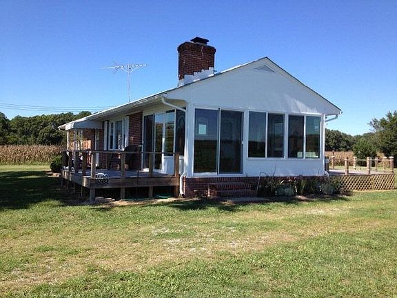Water view of the Rappahannock River, public and private boat landings nearby, peaceful setting on cul-de-sac. Florida room with double pane windows and sliding doors leading onto front and rear deck. Refinished hardwood floors in bedrooms and living room, tiled floor in bath, artesian well. Ready to move as a vacation home or full time living at the River.