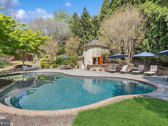 This stunning one-of-a-kind brick and cedar manse located in the Falls Rd Corridor ( off Broadway Rd) is tucked away down a quiet street, sited on a beautiful lot offering gorgeous pastoral views of rolling green hills and mature woodlands. Rarely does one find a property that boasts such precision craftsmanship and felicitous materials selections perfectly executed to create a feeling of timeless, approachable luxury. Marvel at the sophisticated appointments throughout, such as the elegant library/study with hand-fabricated solid cherry paneling boasting gorgeous millwork adornments or the luxurious Venetian plaster wall treatment throughout the Family, Kitchen and Breakfast rooms! Begin each day freshening up in the luxury marble primary bath where, after your invigorating steam shower, you'll select your daily ensemble from the elegant dressing room's custom crafted wardrobe system and exit your bedroom suite via its entrance gallery, admiring your favorite artwork on either side. The stunning kitchen will impress even the most discerning epicurean with gorgeous cabinetry & millwork, marble and granite counters, stone sink with raw edge, Wolf stainless steel 6-burner gas range plus stainless steel & brass vent hood and an oversized center island with GE Monogram stainless steel wall ovens, cabinet-paneled GE warming drawer/steamer & plenty of inviting gathering space for hosting holidays and special events. Look out for the many clever design details built into this kitchen design - try to find the hidden spice racks and the Step-fix “hideaway” stepping stool! Extend your enjoyment of the outdoors into the cooler seasons on the lanai with ceiling heating panels & fans for comfort and speakers & a tv for entertainment! The meticulous attentiveness to detail extends to all the exterior appointments as well, including the detached and attached garages with statement solid wood garage doors & epoxy flooring that currently offer the rare opportunity for 6 car storage (including 1 lift) and potential for 2 additional (with future lifts). The lot is richly landscaped with multi-colored specimen trees, ornamental shrubs and lighted walkways, perfectly positioned to compliment the home's significant architectural elements as well as providing privacy, particularly around the handsome bluestone pool patio boasting a kidney shaped heated pool, raised firepit terrace, built-in grill and gorgeous cabana house with swing-out bar wall, full bath ( making it a 7.5 bathroom property) & storage. Add in the relaxing sounds of the waterfall feature and you understand why this property is truly a little slice of paradise! Only 2 miles from Greenspring Station, the Beltway (I-695) and the Jones Falls Expressway (I-83)