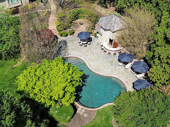 Brick and cedar manseKidney shaped heated poolGorgeous millwork adornmentsInvigorating steam showerHidden spice racksRaised firepit terraceBuilt-in grill
