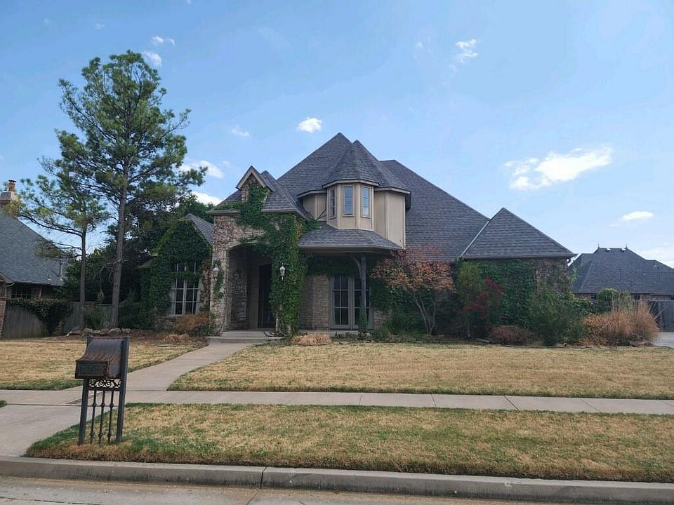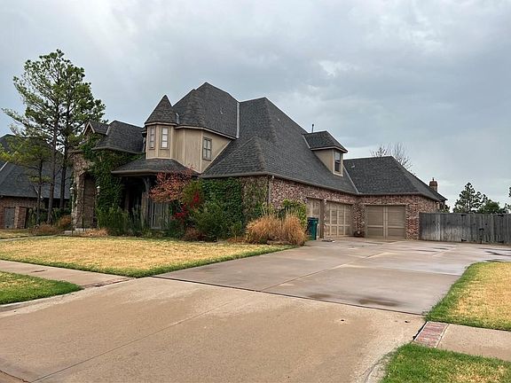 Sophisticated home with a great floor plan and style! Located in Fairview Farm! Tons of light flows through the home with huge picture windows. A formal living or study upon entering features a cast stone fireplace. The chef's kitchen has a large center island that opens to the breakfast eating area, family room with wood beamed cathedral ceiling and floor to ceiling stone/brick fireplace and formal dining room. Upstairs is great with two bedrooms, 1.5 Baths and third living area. Four bedrooms, Three full and two half baths, three living areas. Your own private oasis awaits for you to begin relaxing near the pool or hosting your guest at the outdoor kitchen. Four car garage (3+1), Safe room plus Sprinkler System. With quick access to OKC, Hefner Pkwy and Kilpatrick this location is ideal!