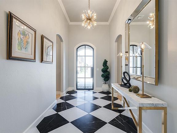 A Modern/Transitional design with an extraordinary high level of custom finishes built by Bill Roberts Custom Homes. Elegant & sophisticated with attention to every detail + an abundance of upgraded luxury features including: Monte Cristo 8 ft. glass panel front door, designer selected tile, quartz counters, lighting & hardware, custom RH window treatments, 60" Crave linear fireplace, white oak wood floors through the main areas & bedrooms. Chef's kitchen showcasing large windows above the sink & featuring a quartz counters, Thermador appliances, built in refrigerator, butlers pantry/+ walk in food pantry + a separate wine bar with bev. refrigerator. Amazing primary suite, spa like bath featuring walk in curbless shower, TOTO bidet toilet, soaking tub, kick lights + oversized closet w/ 2 built-ins & access to the laundry room. 2 large guest ensuite plus an additional upstairs guest ensuite/flex space. Large glass sliders open to a cozy outdoor tiled living space - complete with fireplace, phantom screens, & backs to private acreage for a wooded view. A perfect space to enjoy outdoor living all year long.Notable features: Control 4 Smart House & speakers throughout, spray foam insulation + insulated garage walls & ceiling, High Impact resistant roof, tankless hot water heater, central vac, 99% AFUE furnace & Pure Air filtration, Generac generator, 3 car tandem garage w/epoxy floors + mini split heat/air unit, in-ground storm shelter, upgraded insulated garage doors, Christmas lights package, Trex fencing, irrigation. Camden Park offers maintenance free lawns & luxury living where homeowners can enjoy life’s other adventures. A perfect location convenient to shopping, churches, medical facilities & OKC! Enjoy the community clubhouse, pool, fitness center & outdoor gathering places. Backs to private 80 acres. This home is better than new!