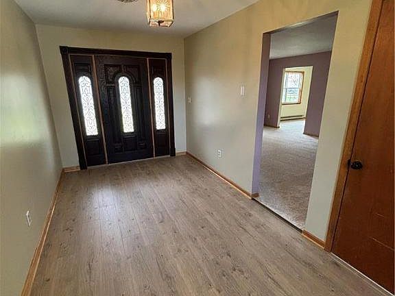 Welcome to this lovely Ranch-Style Home with Mountain Views! This spacious 3 bedroom, 3 full bath home is nestled in a quiet, desirable neighborhood and sits on a generous lot with a large, scenic yard. Step inside to a welcoming foyer and a functional floor plan. Enjoy brand NEW laminate flooring in the foyer and freshly painted eat-in kitchen, and NEW carpet in the spacious living room, dining room, and hallway. The master suite includes a private full bath w/stone tile standing shower. Lower level offers an expansive family room with pellet stove and french doors that open to a large back deck, w/room for grilling and entertaining, offering seamless indoor-outdoor living. Other features include a laundry room, a third full bathroom, and an additional flexible space that can serve as a rec room, home office, gym, or even a 4th bedroom. Ample storage throughout. Attached 2 car garage with additional attic storage.