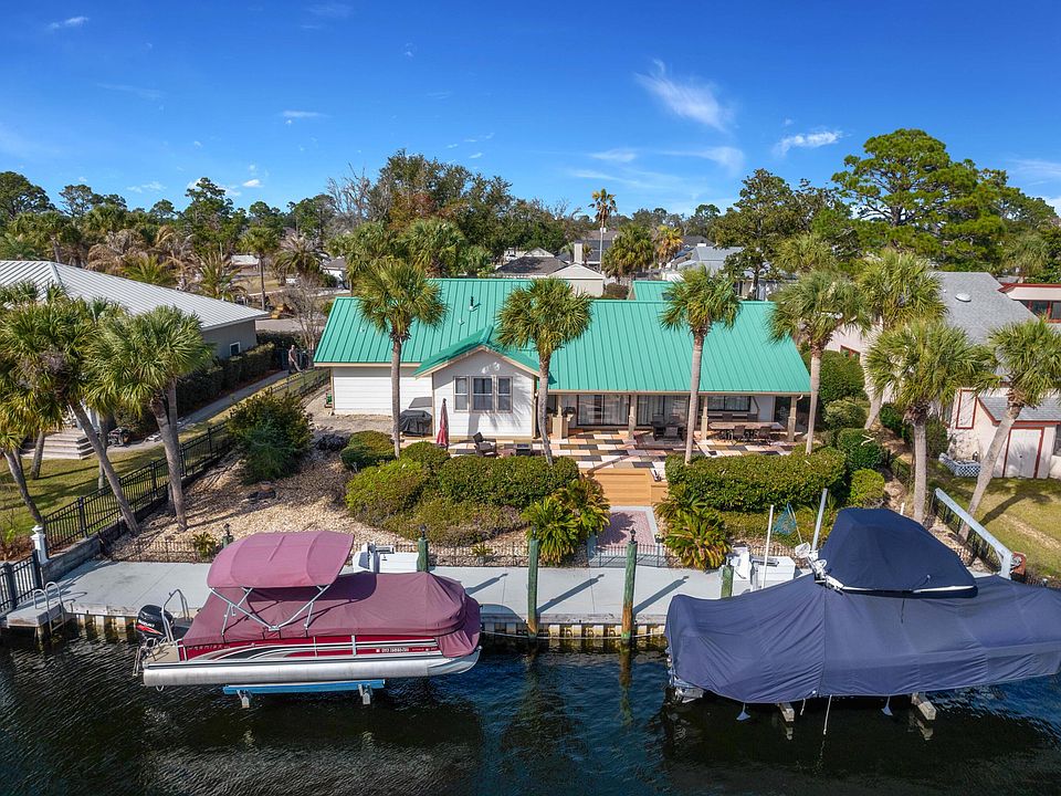 Boat owner's dream in the gated community of Bay Point! Over 90 feet on a deep water canal in Panama City Beach! This home is close to the entry of the canal making it convenient and quick to zip out to the gulf for boating, fishing and fun! This is your perfect home for waterfront living and entertaining. Your open floor plan has a family room, living room, and kitchen with premium appliances, including a natural gas range and 2 wine refrigerators, Brand new HVAC OCT 2023. Each bedroom has a private bath and there is an additional half bath for guests. Master bedroom has a sitting area that would make a great office. Step outside onto your expansive patio to enjoy outdoor living and dining, or to cast off on your boat! Bay Point is a waterfront community with a brand new, state of the art marina, golf course, tennis and close to grocery, shopping, dining, St Andrews State Park, Pier Park, and of course the beautiful emerald waters and white sands of Panama City Beach. Call today!