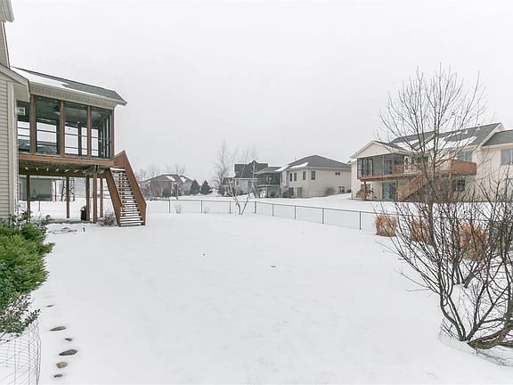 Beautiful 4 bedroom walk out ranch in Iowa City! 10' ceilings in the great room with decorative arches, upgraded Brazilian tiger hard wood flooring in great room and hallways. Spacious kitchen with upgraded appliances, back splash and counter tops. 1st floor laundry room next to bedrooms. Large mudroom off of garage. 2 gas fireplaces one on each level. Plumbed for central vac. Over sized 3 car garage. Beautiful fenced in yard with great landscaping! Glass windows being added to screen porch before closing!
