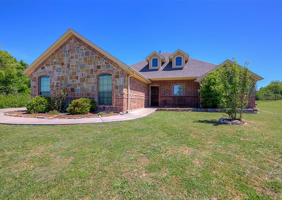 BETTER THAN NEW RUSTIC ELEGANCE & pride of ownership abound in this stunning 4-2-3 charmer on almost an acre in Rhome's sought after Ellis Homestead. Upgrades galore & no detail has been overlooked. This home is graced by warm hardwood floors & beautiful ceramic tile. Arched doorways, vaulted ceilings, crown moulding, chair railing, window coverings & two fireplaces are a few of many upgrades that add to the allure. Kitchen features all stainless appliances & an abundance of granite countertops. The bathrooms boast granite also-wait until you see the oversized tile walk-in shower in the Master Suite! Large covered outdoor living center & 3 car garage add to the ample outdoor space. Hurry...this won't last!