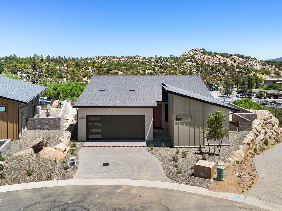- Exterior features: Architecture Style: Contemporary, Garage Door Opener, Gas, High Ceilings, Kitchen Island, Landscaping-Front, Landscaping-Rear, Level Entry, Master Downstairs, No Coverings, Paver Block, Pets - No, Roof Type: Composition, Screens, Smoke Detector(s), Solid Surface Counters, Sprinkler/Drip, Storm Gutters, Tinted Windows, View Type: Granite Mountain, View Type: Thumb Butte, Walk In Closet, Walk-In Closet(s), Wash/Dry Connection