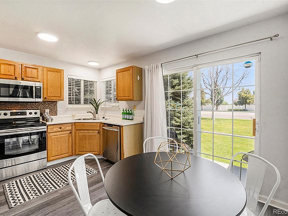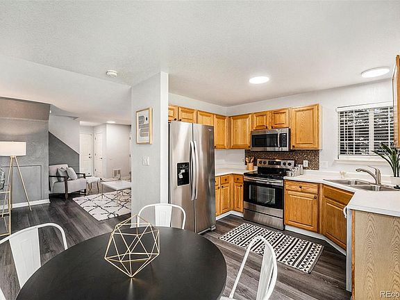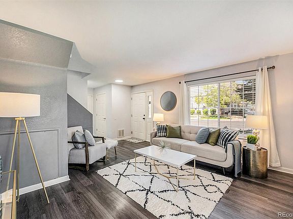 The good life awaits! This stunning end-unit townhome with new carpet throughout, updated fixtures, tile, and LVP flooring sets you up for a great quality of life on day one! Move in ready with newer furnace, AC, and new interior and exterior paint in 2022 so you can live low maintenance and worry free. The open loft is perfect for a private study, home office, play area, or reading lounge. Your large primary suite features a walk-in closet and en-suite bath with beautiful updated tile, fixtures, and a dual vanity. The roomy secondary bedroom features corner windows, a ceiling fan, and is adjacent to an additional full bathroom. In-unit laundry with front-load washer and dryer included! Location, location, location... this home enjoys exclusive private outdoor patio and is adjacent to shaded “under-tree lounge area”. The chef’s kitchen comes complete with all stainless steel appliances, abundant cabinet space, and tons of natural light. The large open living room, main floor bathroom, and oversized 1-car Attached garage make day-to-day life a breeze. You will enjoy exclusive community amenities including beautiful grounds, clubhouse, pool, fitness center, and tennis courts. Quick access to Side Creek Park, Highland Hollows Park, Central Rec. Center, 470, DIA, nearby Lightrail stations, numerous walking/biking trails leading to Cherry Creek State Park/Reservoir, convenient bus routes, I-70, I-225, restaurants, shopping, and so much more… Don’t miss out! This is THE ONE.