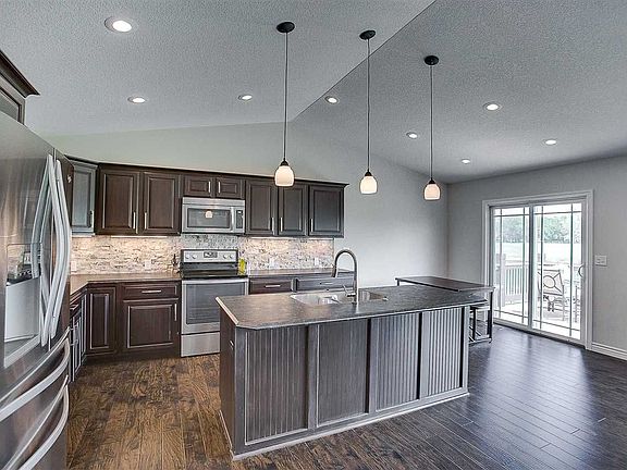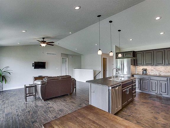 Before you build, make sure you see this move-in ready ranch with breathtaking water views from almost every window! This immaculate home features hardwood floors throughout the main floor, great open floor plan for easy entertaining, vaulted ceilings, lovely living room with large windows to bring in the natural light, fabulous kitchen with island with breakfast bar, under and over cabinet lighting, cushion close drawers, dining area with sliding glass door to the deck to make your summer barbecues a breeze, and main floor master suite with hardwood floors, large windows overlooking the water, vaulted ceiling with ceiling fan, walk-in closet with built-ins, and light and bright private bathroom with tile flooring, recessed lighting, corner jetted tub, and tile shower. Enjoy just hanging out in this fantastic finished basement complete with large family room with gas fireplace with stone surround, large viewout windows, door to the patio, built-in bookcases, and recessed lighting. This lower level also features two spacious bedrooms and a full bathroom. Sit back and relax out on the composite deck overlooking the pond and spacious backyard.