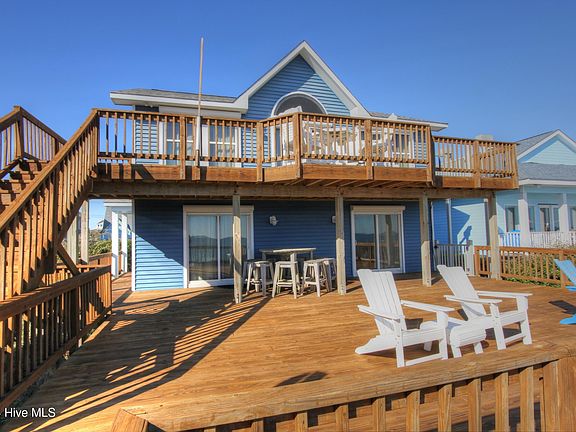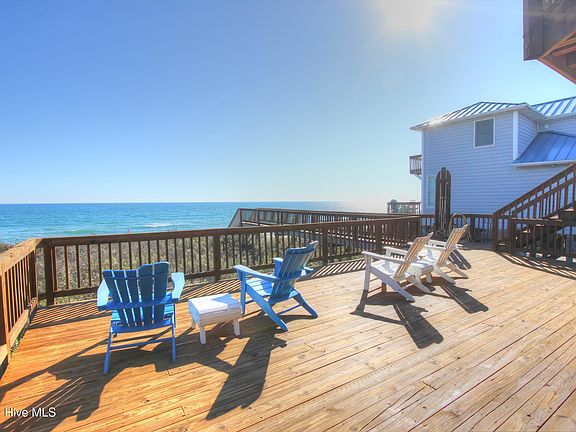Discover your dream Oceanfront home with breathtaking ocean views, numerous upgrades and new renovations. From the new vinyl siding, new roof, new HVAC, and freshly stained decks, you will immediately be impressed. Enter the home to enjoy the newly painted interior, new flooring, new appliances, new granite countertops, the list goes on and on! The spacious layout includes an open living area with vaulted ceilings on the top floor featuring panoramic views of the Atlantic Ocean and a door to the upper oceanfront deck. The living and dining area is open to the fully equipped kitchen, featuring brand new appliances and a welcoming kitchen island. For added convenience, there is a wet bar, extra sitting area, and a full shower bath on the top floor. The 4 bedrooms on the first floor include two oceanfront bedrooms with doors to the expansive partially covered oceanfront deck. This first-floor deck offers incredible ocean views with an outdoor shower and private walkway to the beach. Each deck is accessible by the cargo lift, perfect for luggage and groceries. For added peace of mind and extra convenience, the home includes storm protection with rollup shutters, covered parking area, and storage on the ground level. The large oceanfront dune and prime Surf City location offer an exceptional blend of tranquility and yet only a short distance to the dining, shopping and local attractions. Don't miss out on this opportunity to own a beachfront home on Topsail Island.