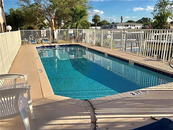 Just REDUCED. WELCOME TO THIS FIRST FLOOR. GULF ACCESS CONDO, WITH PRIVATE DEEDED DOCK AND BOAT LIFT. This first floor unit is situated on the left-hand corner, so NO STAIRS to go up and down. Completely tiled throughout and desirable open floor plan, with split bedrooms, roomy master suite offers the attached bath with double sinks and update tiles in tub/shower, sliders lead to lanai, LARGE inviting screened lanai overlooking the HEATED POOL, where you can walk right out to your private dock and hop on you boat and off you go. Extras include stack-able washer and dryer, ceiling fans, walk-in pantry with lots of storage. SOUTHERN EXPOSURE on Lanai and pool area. SE location with Civic Park across the street and close to shopping, restaurants, airport and Fort Myers. WHY WAIT MAKE AN APPOINTMENT TODAY. SMALL DOG IS ALLOWED. See BONUS in Remarks