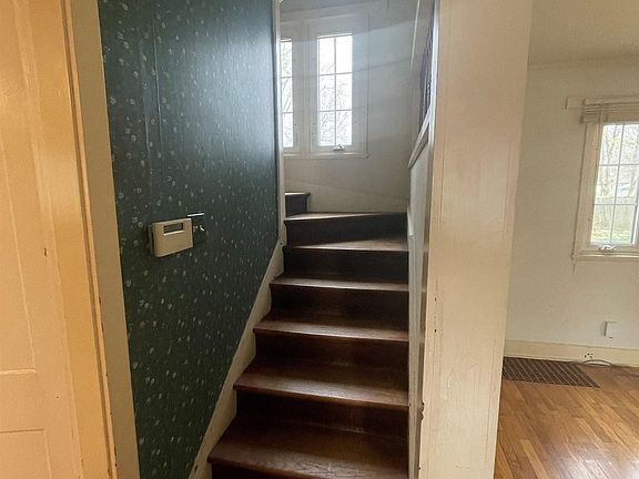 Bring back the sparkle to this distinctive 2-story home with imagination, some repair know-how and buckets of paint. Throughout the home, there is hardwood flooring in good condition, but in need of spot refinishing here and there. The updated kitchen has lovely hickory cabinets, a pantry and a gas stove and refrigerator that remain with the home, along with the washer and dryer. The primary bedroom is a spacious 17' by 16', plus there are other two bedrooms. There are two fireplaces, one in the living room and one in the primary bedroom. Because of the age of the home and their unknown condition, the seller will not guarantee the condition of the fireplaces. The large back yard is privacy fenced and has a charming stone path leading from the back door in the kitchen to the detached two car garage. Once the destination for lively neighborhood get-togethers, the privacy-fenced back yard has a seating area with a fish pond (now unused) and fire pit. Just bring your own garden chair and hot dogs.