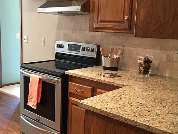 Newly Updated home in a great neighborhood! Kitchen with gorgeous floors, stainless appliances, granite counter tops/travertine backsplash. Bright & sunny eating area in the kitchen. Open concept home. Living room has vaulted ceiling with wood beams, cozy fireplace, built in bookshelves. Formal dining has a wall of windows overlooking backyard. Private master suite has a door to the covered back patio-enjoy a glass of wine after a tiring day! 2 bedrooms on other side of the home are large and have great closet space. Updated hall bath. Two year old sprinkler system, emergency alarm, extensive landscaping-this home is move in ready!