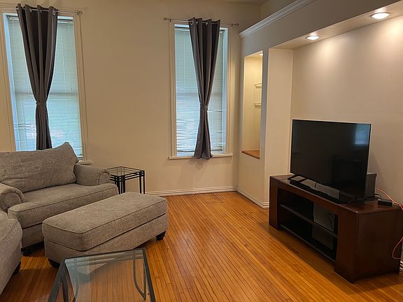 FULLY FURNISHED and ready to host corporate, contruction crews, nurses or any other group needing a rental for 30-365 days. BEAUTIFUL AND NEW! NEW CARPET in all bedrooms. NEW FLOORING in kitchen and both bathrooms. NEW PAINT in bedrooms and kitchen. Spacious 3 bed/2 bath. Separate dining room and living room. Off-street parking with a private driveway. The adjoining bath was completely remodeled. Hardwood and tile floors in remainder of unit. Washer/dryer in unit. Unit located entirely on the first floor. The large layout has 2 bedrooms and 1 bath in a separate area from the main bedroom. Could be used as an office, kids area or for roommates who want their own space. Includes 3 twin XL beds and one queen. Perfect time of year to move in and enjoy the private back patio and shaded yard. NO Smoking. NO PETS! Landlord pays for electric, gas, water, trash, internet, and yard service. Great for corporate, contruction crews, nurses, etc. No surprises for the tenant.