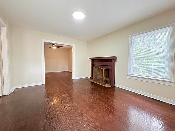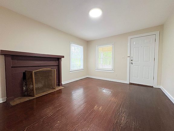 Charming 1950s house with living room, dining room, and wood burning fireplace.