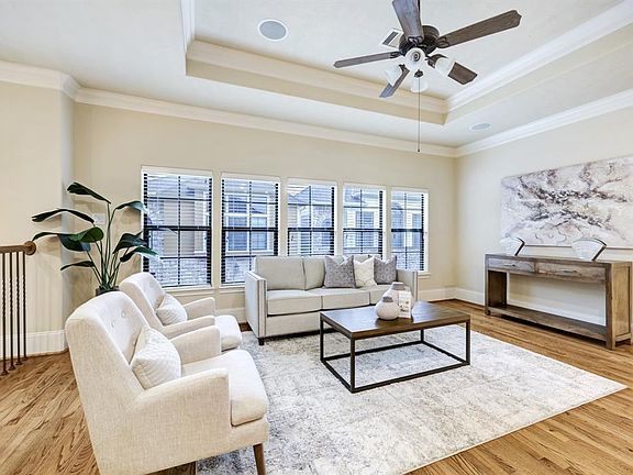 - 1 Bedroom Down - Not Primary BR, Ceiling Fan(s), Crown Molding, Formal Entry/Foyer, High Ceilings, Primary Bed - 2nd Floor, Sitting Area, Split Plan, Walk In Closet, Walk-In Closet(s)