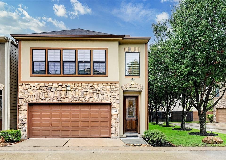 Tastefully Upgraded 2/2/2 Home in 2025 on Corner Lot Located In Sought-after Gated Community in Rice Military! Enjoy living in close proximity to Memorial Park, the Heights, Downtown and many easy-access restaurants and grocery stores on Washington Ave such as Buffalo Heights HEB. Inside you will find a split floorplan, open granite kitchen, stainless appliances, rich hardwood floors throughout, spacious flexroom on the 1st floor with upgraded stained concrete floors. Ideal for roommates. Main floor boasts open floorplan between the living/dining rooms & kitchen and a dry bar with wine fridge included. Primary bedroom is easily accessed on main floor as well with spacious walk-in closet and double vanity, soaking tub, and glass shower in bathroom. Home includes new AC and a fresh paint job. Washer/dryer/fridge included. Private backyard with new west fence, wood deck & syntactic turf in 2025 (not on photos). Available for move in on or before 12/1!