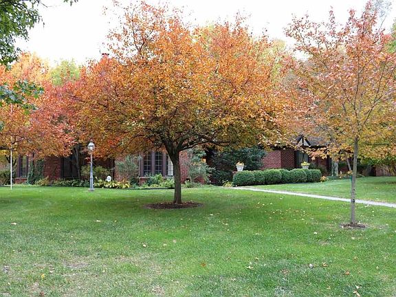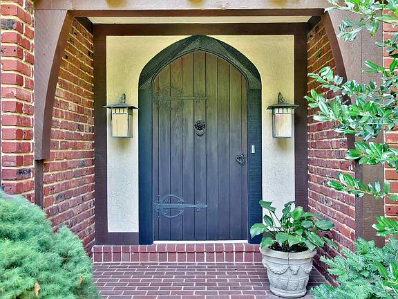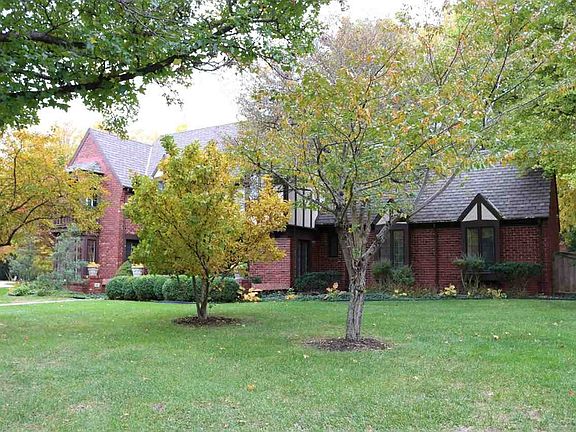 Beautiful Tudor home in Newton's Country Acres. Stunning corner lot on over 1/2 acre. Wooded with mature shade trees, water features, brick patios, sprinkler system and well. Circle drive with side load garage. Newer roof. Superb curb appeal! The interior of this home is simply grand. Living room with vaulted wood beamed ceilings, floor to ceiling brick fireplace, french doors that cover the length of the room overlooking the backyard with access to the brick patio. Small wet bar and wood floors that will amaze. Foyer with rounded solid wood door. Gourmet kitchen with island, hard surface counter tops, wood beamed ceilings, Knotty Alder cabinets, full eat in area with built in china hutch and large pantry area. Main floor laundry adjacent to kitchen includes, storage, large sink and half bath. Main floor den with built ins and wood burning fireplace. Formal dining room is AMAZING space! Full vaulted wood beamed ceiling and beautiful wainscot. Master includes shower/tub combo, dressing area, built-ins, double sinks, and vaulted beamed ceilings. Two bedrooms up with jack and jill bath. Basement is finished with rec room, fireplace, 5th bedroom and full bath. Zoned heating and cooling. Don't wait!