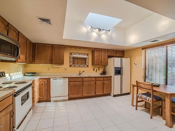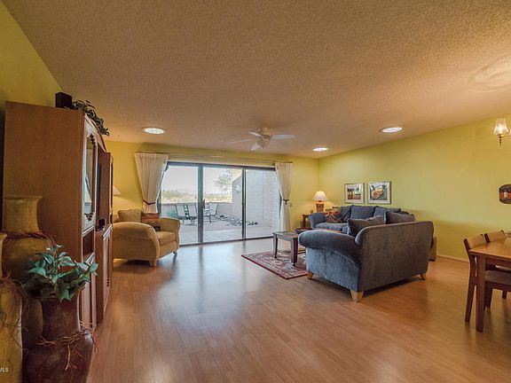 The essence of Green Valley living is captured in this home with its red block territorial exterior designed for desert ambiance and low maintenance. The front landscaping has a brother and sister Saguaro and Barrel Cactus surrounded by brick paver walkways. A spacious floor plan that is perfect for entertaining with open living and dining areas set upon easy care wood flooring. The backyard views are drawn in through a wall of glass sliding doors and adorned by natural light from 3 skylight tubes. The kitchen offers a large U-shaped kitchen under two giant skylights featuring an abundance of cabinets and counter space with built in desk area. The quiet and oversized master bedroom suite has glass sliding doors leading to the back patio and a bath with an extended counter top and