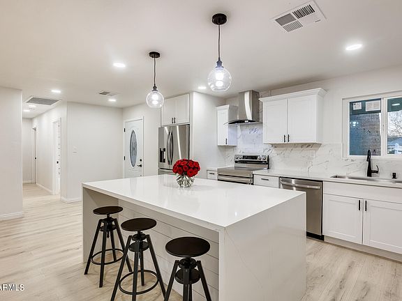 Beautifully remodeled four-bedroom, three-bathroom Uptown Phoenix home in the Grandview Historic Neighborhood - walking distance to Light Rail and Melrose district, just minutes from Encanto Park, Steele Indian School park, Downtown Phoenix, and the Central Corridor. The home sits in a quiet cul-de-sac on a huge, corner lot. Inside you will find a fully remodeled home - brand new kitchen including all new cabinetry, a custom island with waterfall stone slab, and brand new appliances, new wood-look flooring, new windows, and new electrical and LEDs throughout. This home has a massive ''great room'' with huge, vaulted ceilings and a gorgeous floor-to-ceiling fireplace. This is a rare opportunity to own a beautiful and modern home in a desirable, convenient, and historic location!