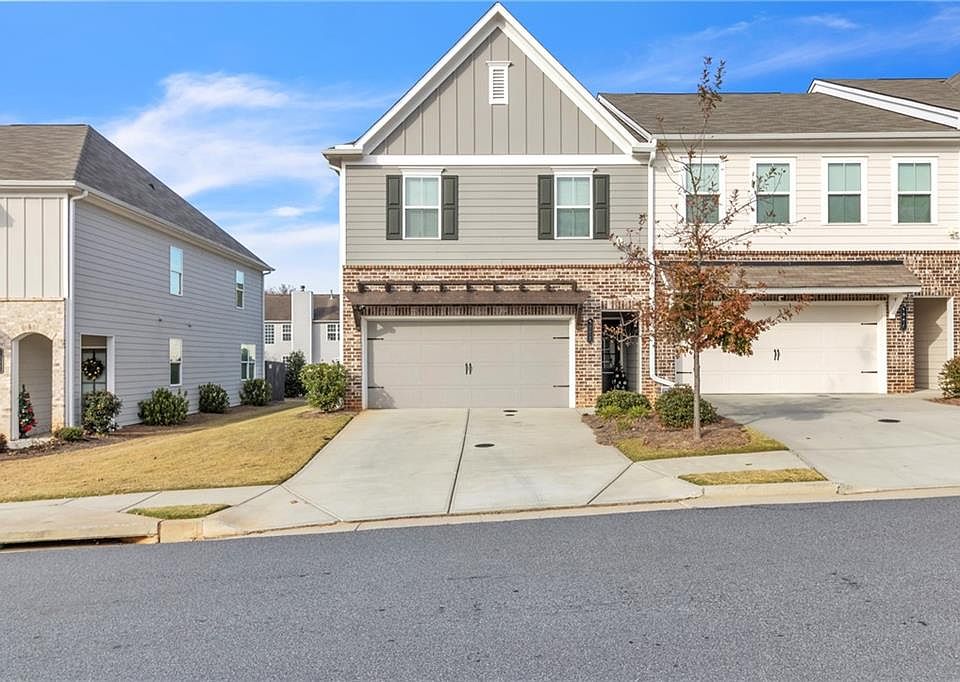 Welcome to this stylish and move-in ready 3 bed, 2.5 bath townhouse in the sought-after Edgemoore at Milford community in Marietta! This spacious home features an open-concept main level with luxury vinyl plank flooring, a bright living room with fireplace, and a beautifully appointed kitchen showcasing white quartz countertops, shaker-style gray cabinetry, a large island with seating for five, gas range, walk-in pantry, and sleek black appliances. Upstairs, the oversized primary suite boasts a walk-in closet and en-suite bath with double vanity and large tiled shower. Two additional bedrooms share a full bathroom, and a flexible loft area offers space for a home office, playroom, or media nook. Enjoy the private fenced backyard with patio—perfect for relaxing or entertaining. The home includes a 2-car garage, upper-level laundry, and neutral finishes throughout. Located in a quiet, sidewalk-lined community with a resort-style pool, cabana, dog park, and pavilion, this home offers low-maintenance living with HOA covering exterior upkeep, termite, roof, landscaping, and trash service. Minutes to the East-West Connector, Silver Comet Trail, Marietta Square, Smyrna Market Village, Truist Park, and major highways for an easy commute. Zoned for Cobb County schools and close to shopping, dining, and parks—don’t miss this exceptional opportunity!